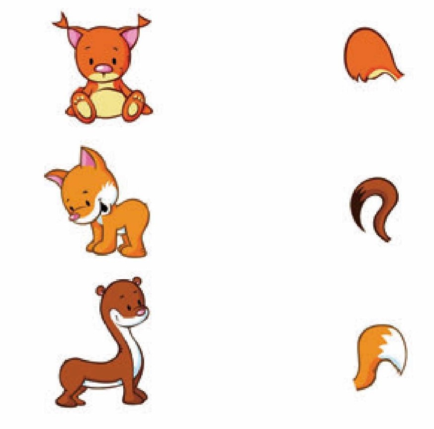 小动物的尾巴都不见了,帮它们找找吧!然后用线连一连。