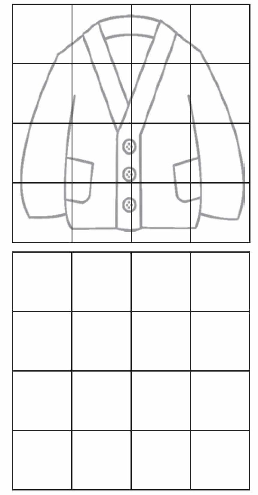 照样子,在下面的格子里画上相同的图画,并涂上颜色吧!