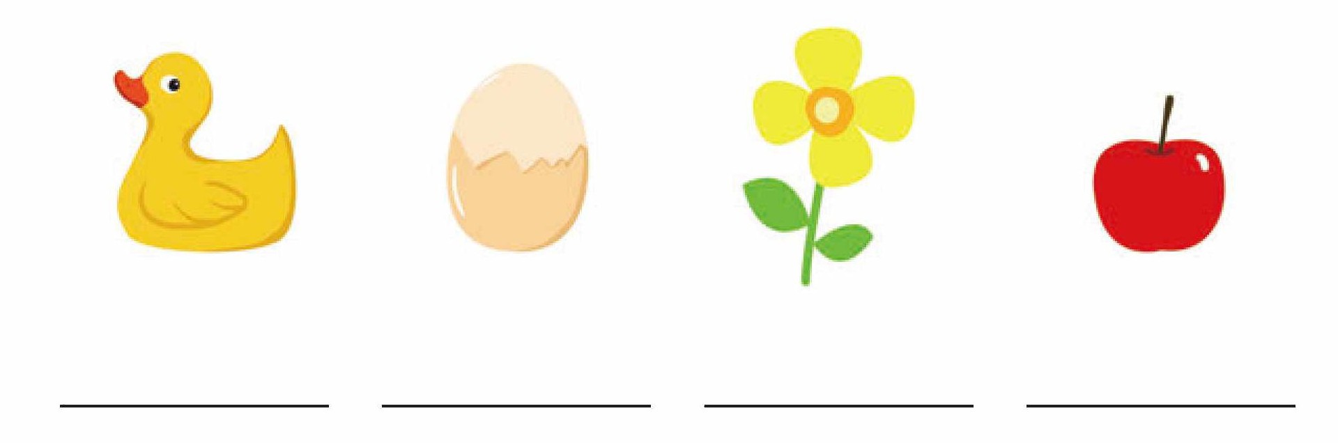 仔细观察画面上的4件物品,它们应该分别属于哪位小朋友呢?请你把字母填在对应的方框里吧!