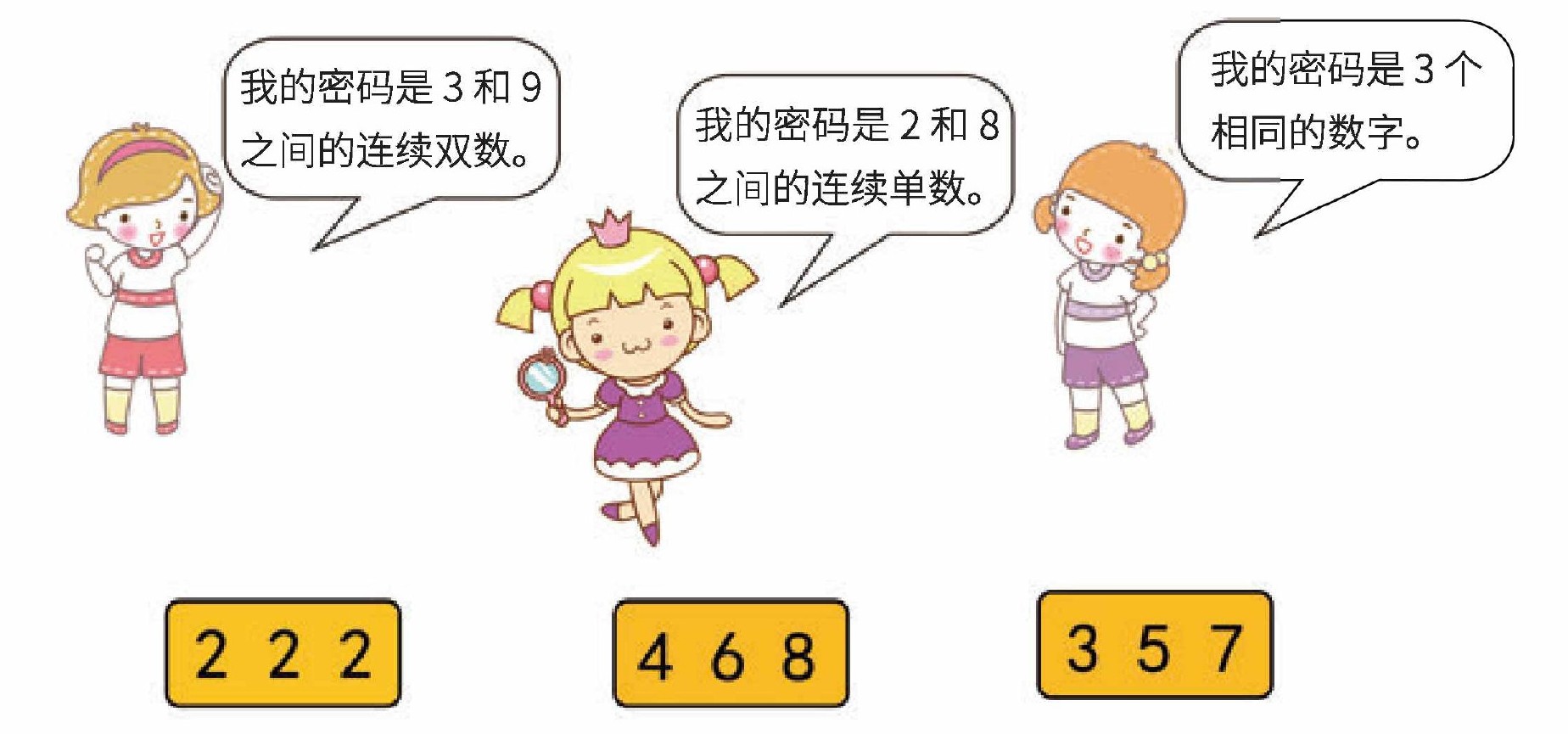 小红、花萝、梦梦都有一个带锁的日记本。请你根据她们各自说的话,找到她们日记本的密码并用线连起来。