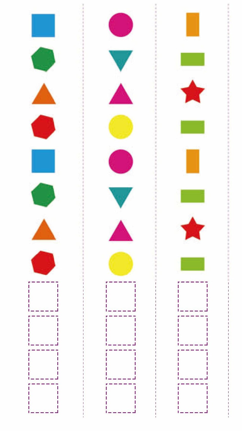 观察下面每组图形的排列规律,然后再接着画一画吧!