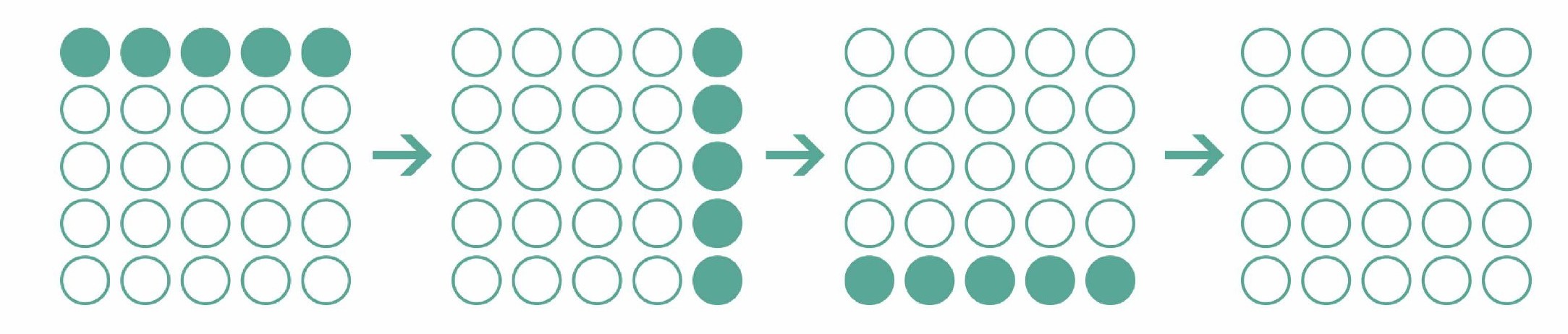 下图中的小彩球是按照什么规律排列的呢?请你找出规律将最后一幅图中的小球涂上正确的颜色吧!