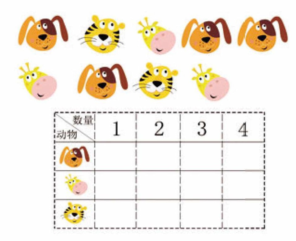 认识统计表,学涂小方格,每种动物有多少个就涂几个小方格。