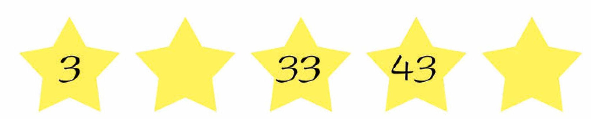 星星上的数字有什么排列规律?想一想填上缺少的数字吧!