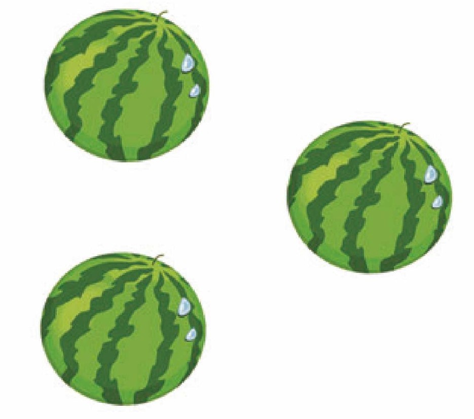 下面有3个西瓜,分别将它们平分成2、4、6份,该怎么切呢,动手画一画吧!