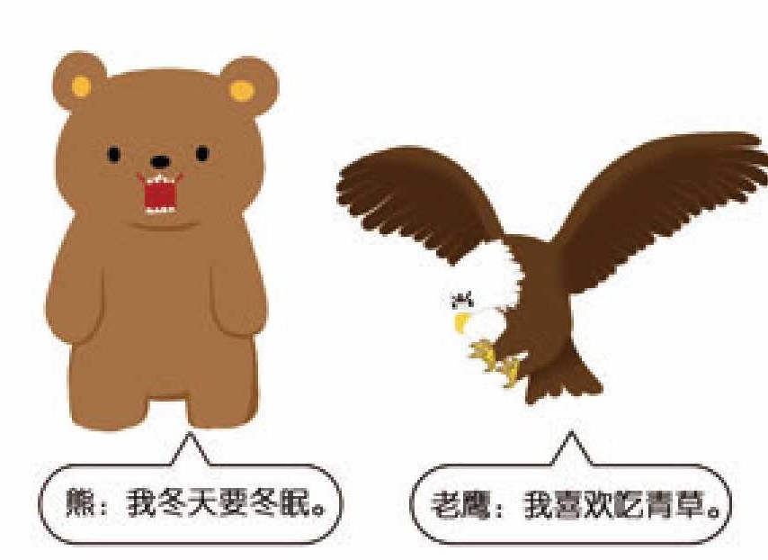 看图想一想,它们谁说得对,谁说得不对呢?在对的下面打“√”,在不对的下面打“×”。