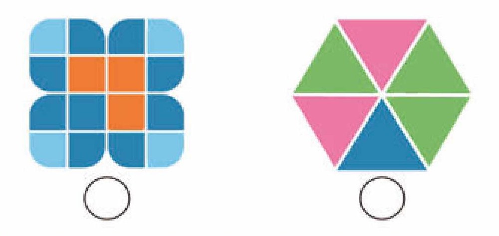 下面每幅图中,哪种颜色覆盖的面积最大?请在图下面的圆圈里涂上这种颜色吧。