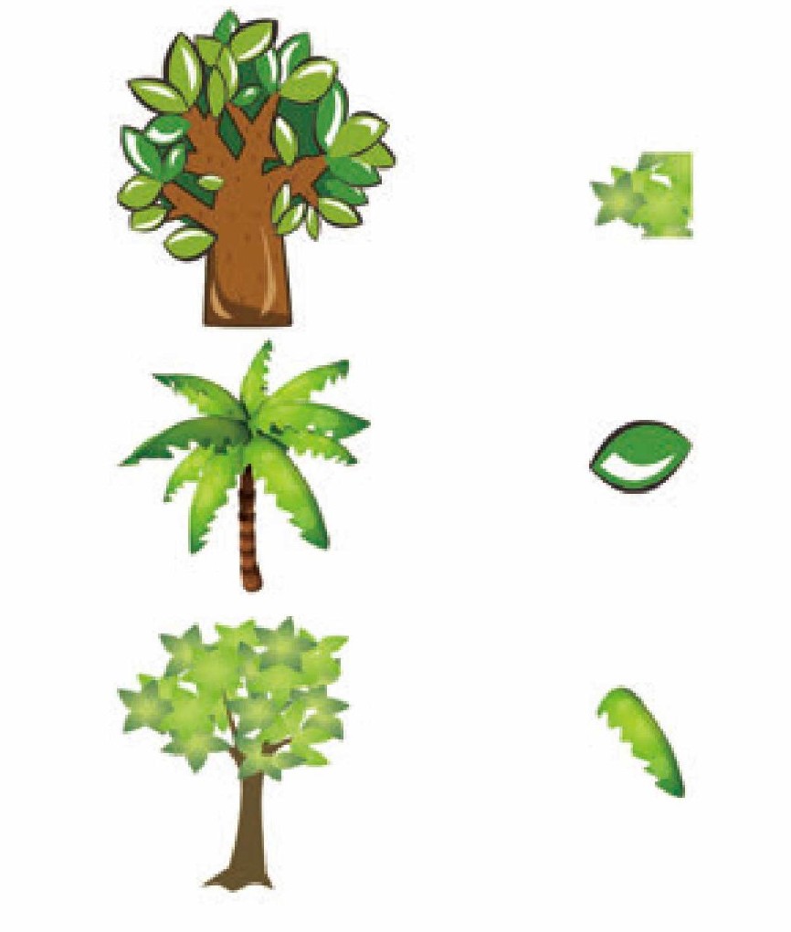 你能帮助画面右侧的小树叶找到它们的妈妈吗?请用线连一连吧!