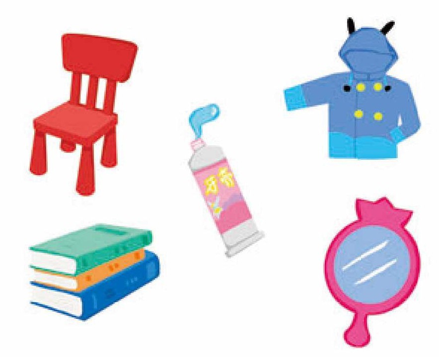 从下图中找到名称第二个字是“子”的物品,把它们圈出来。