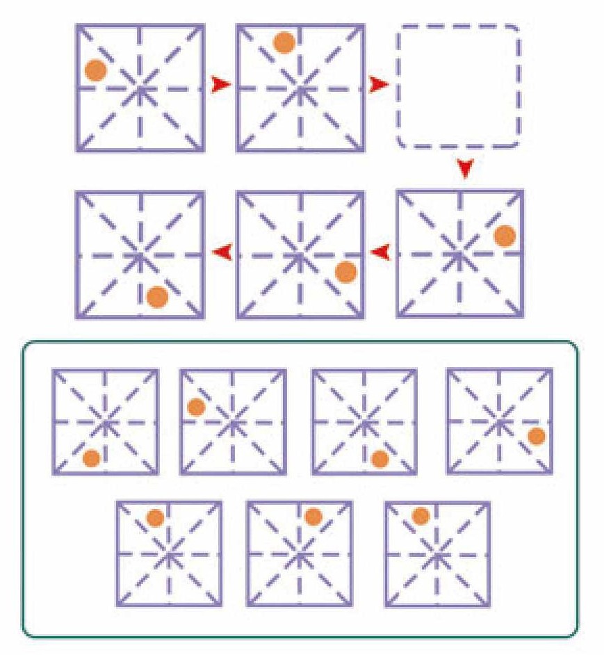 根据上图的排列规律,空白处应该放入哪幅图呢?请你在方框中把正确答案圈出来。