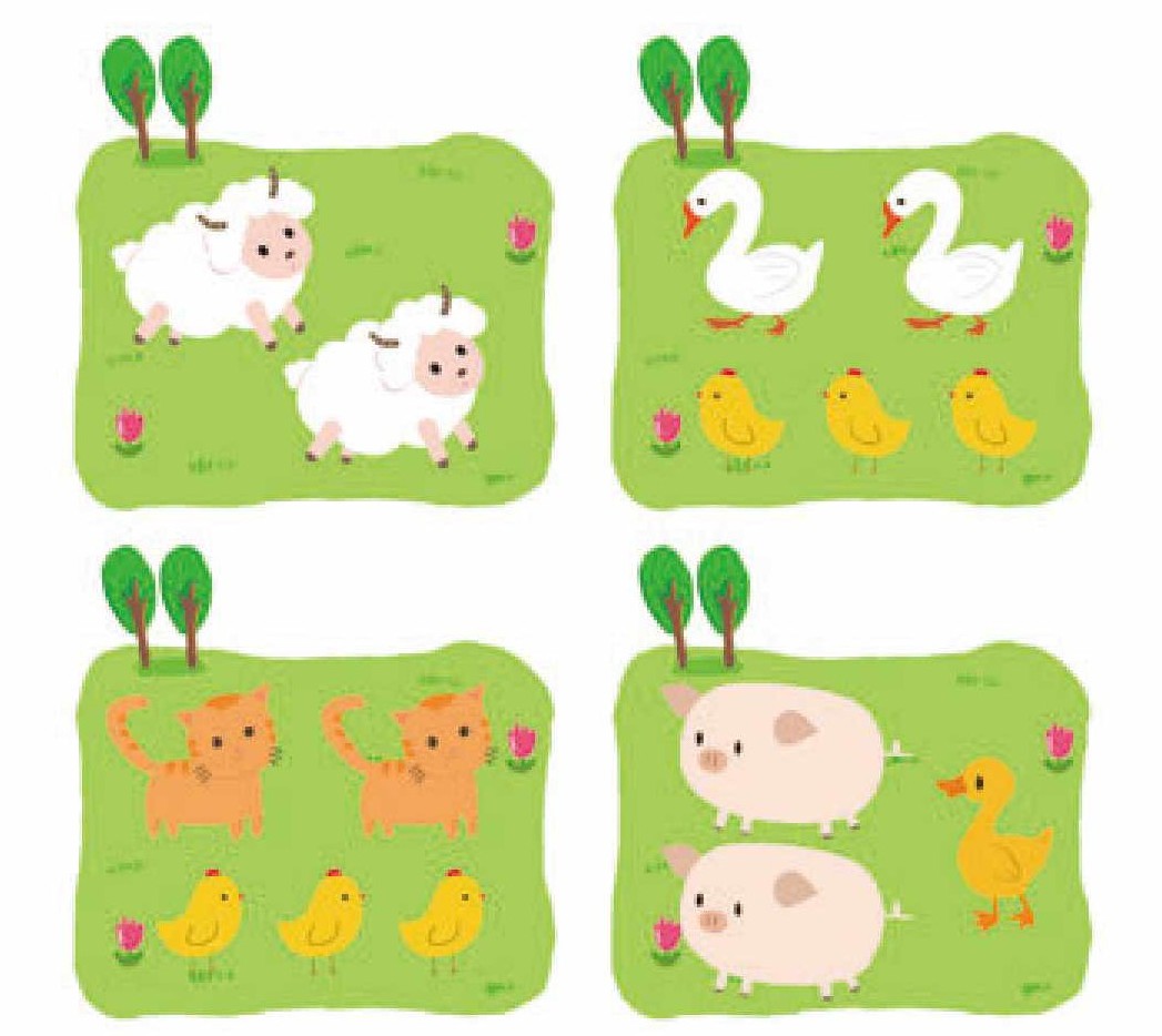 请你数一数,哪组图中小动物腿的总数最多呢?把它圈出来吧!
