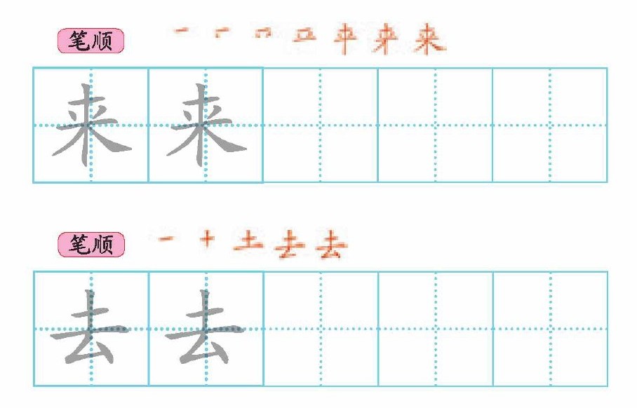 你能按照正确的笔顺学写下面的字吗?请你试着写一写吧!