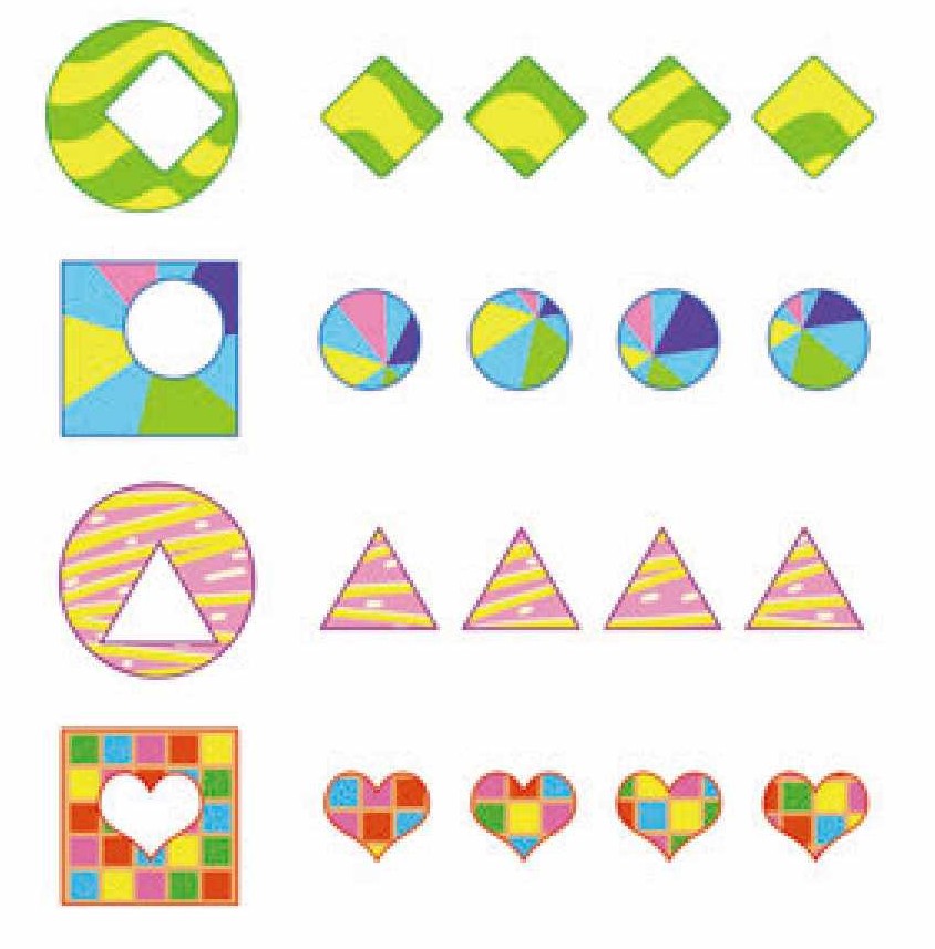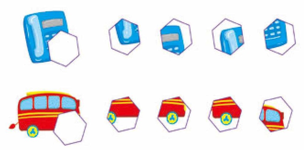 左边的图形被剪掉了一部分,请你从右边的图中找到它们被剪掉的部分,并圈出来吧!