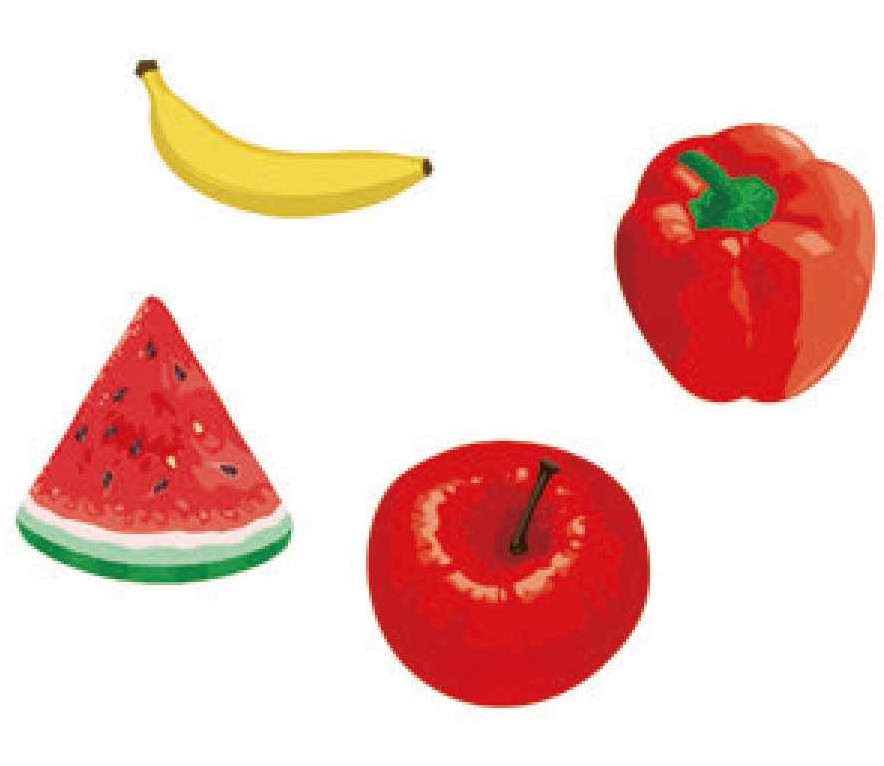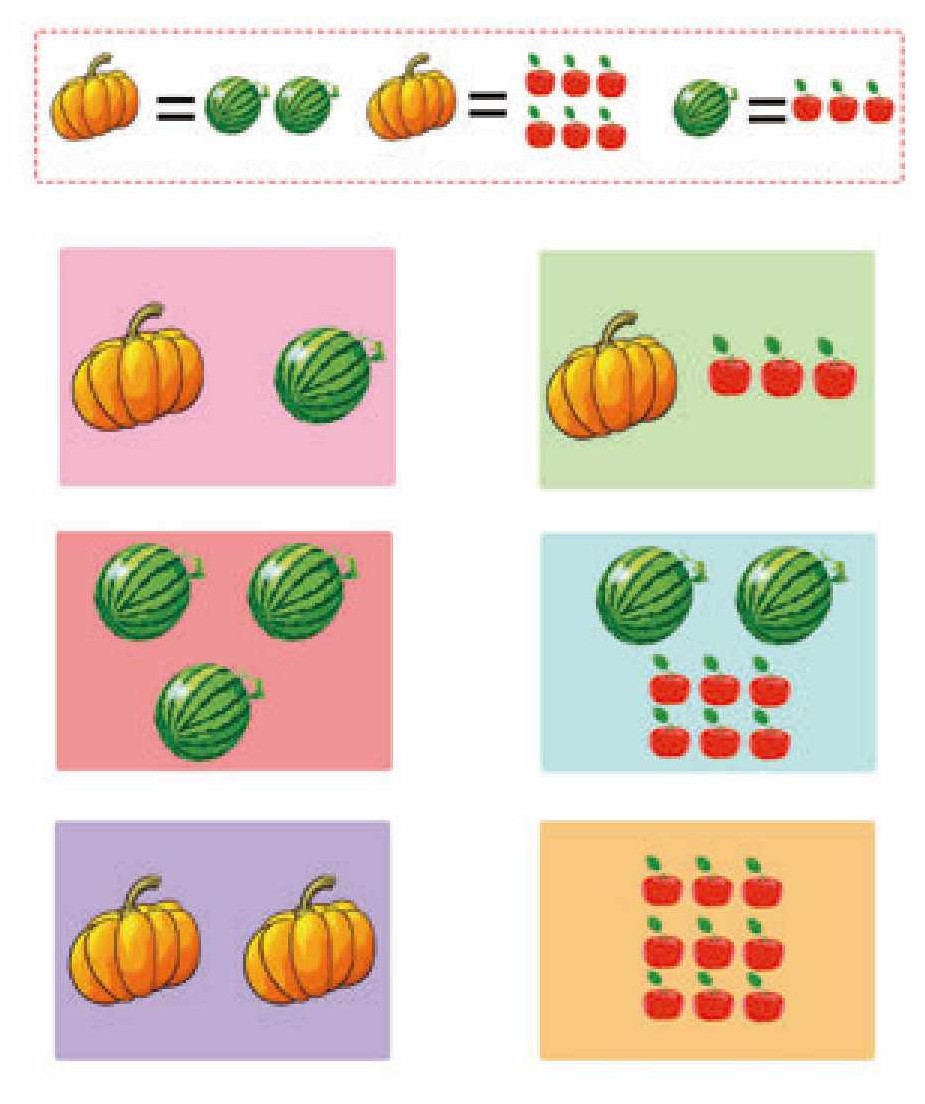 请根据下面的等量关系,找到等量的蔬菜和水果,用线连起来。