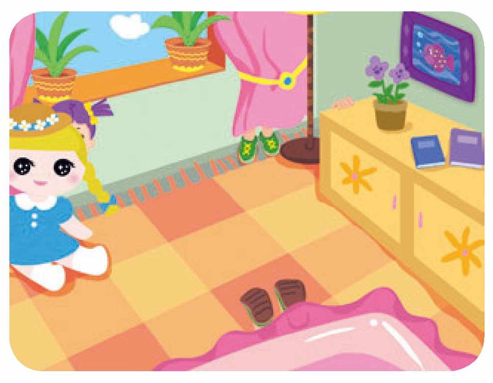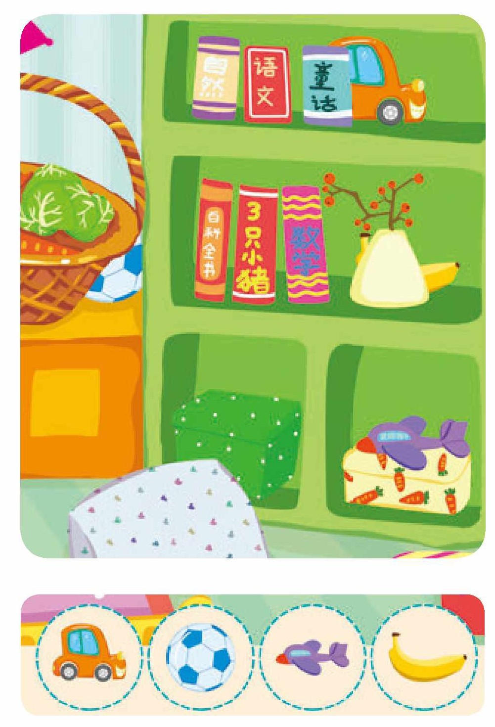 你能从果果的房间里把画面下方的物品找出来吗?请把它们圈出来吧!
