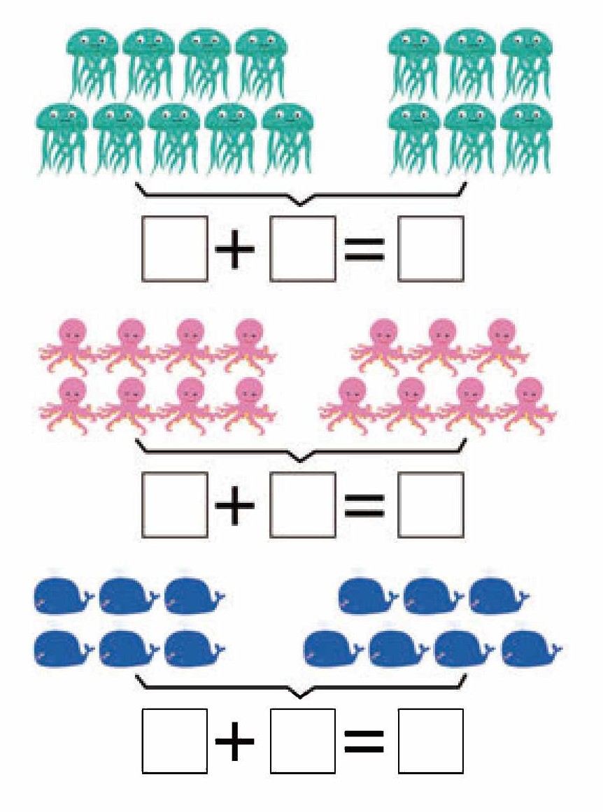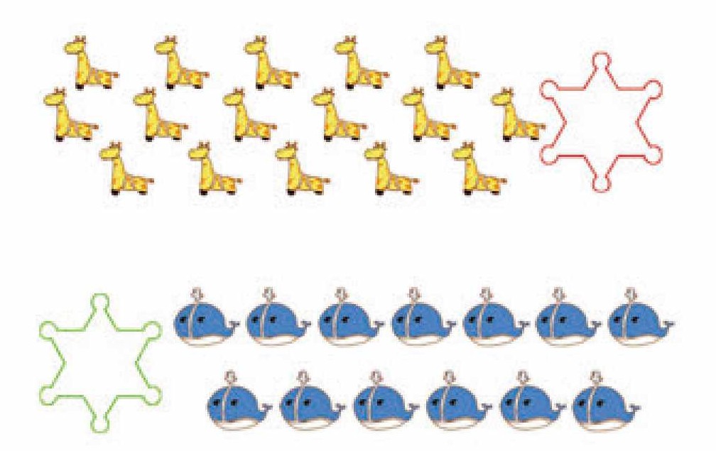 数一数每组小动物的数量,并把数字填在旁边的六角星里。