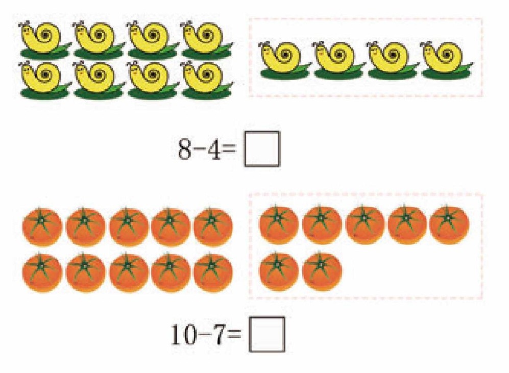 找出数量和示例中的数字一样的一组物品,用“〇”圈出来吧!