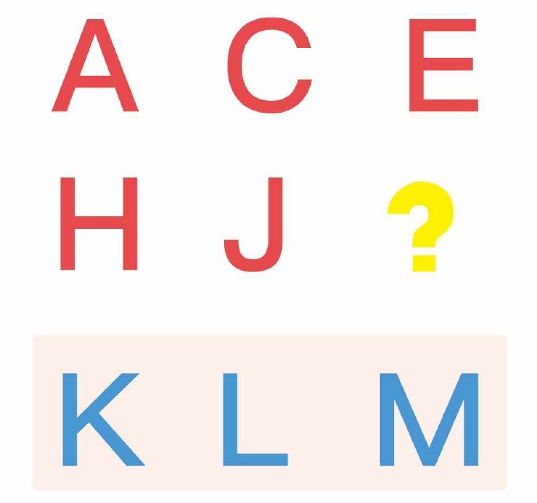 根据第一组的排列规律,在方框中绐“?”处选择合适的字母,并把它圈出来吧!