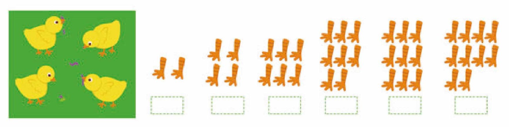 下面的小鸡一共有多少条腿?请你在右图中找出来并画上“√”。