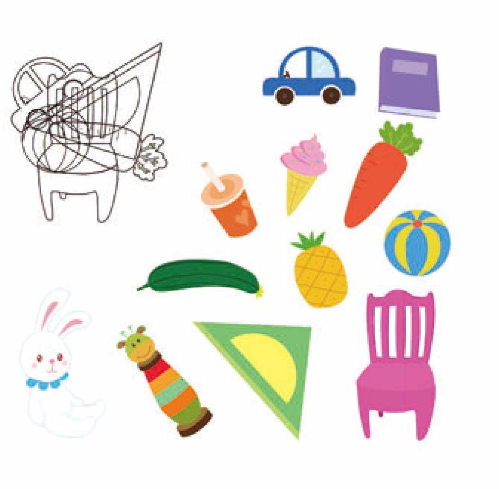 下图中都有哪些物品?仔细看20秒,然后合上书,讲一讲你都记住了哪些。