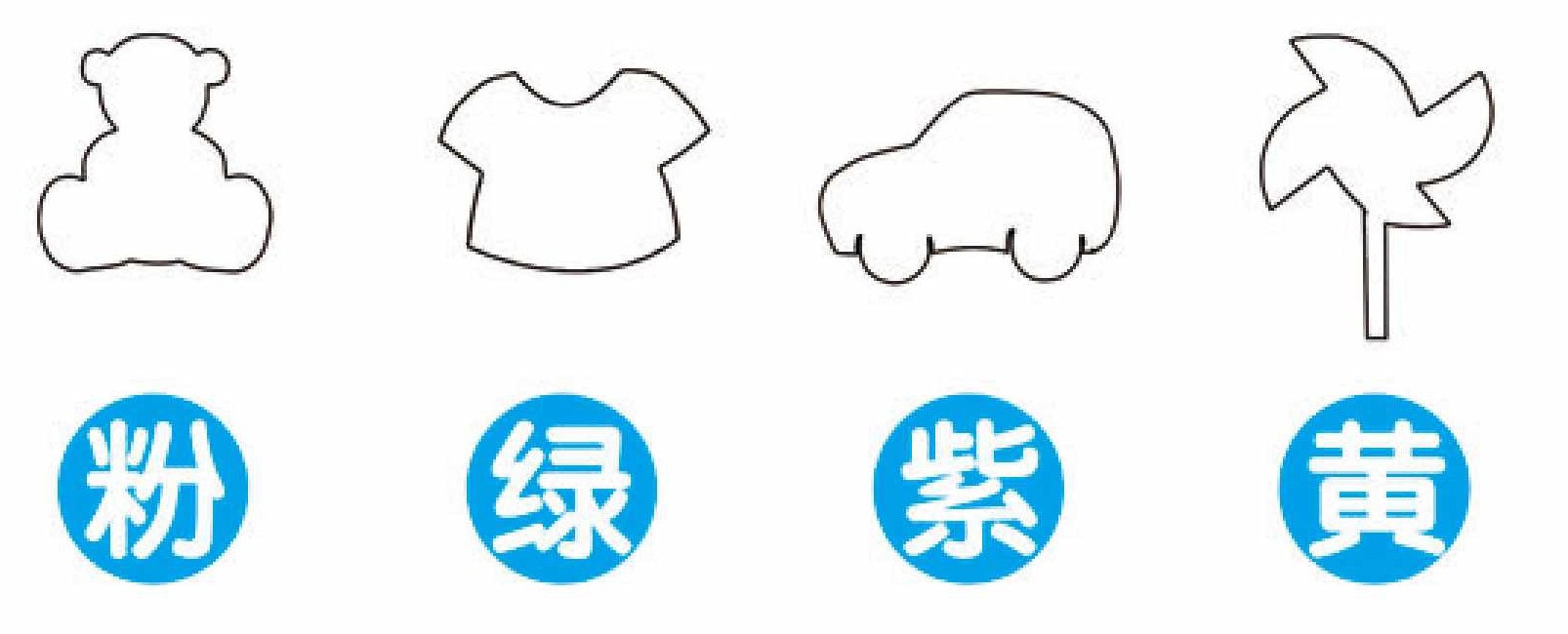 读一读下面有关颜色的词语,然后再把词语上方的图形涂上相应的颜色吧!