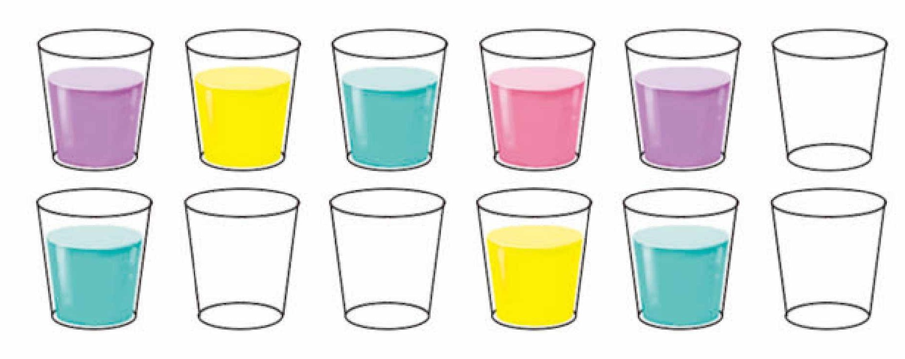 请你观察下面这组杯子的摆放规律,然后给没有颜色的杯子涂上颜色吧!