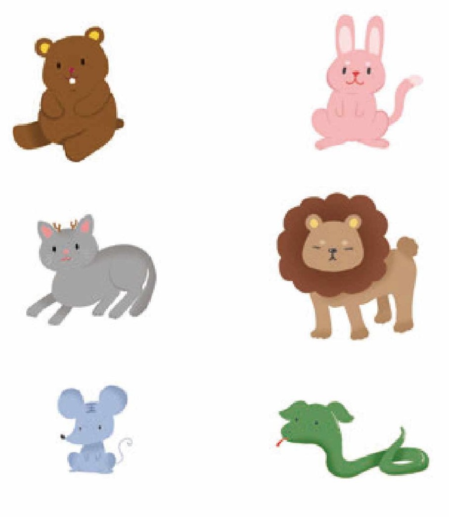 请你从下面找出十二生肖中的动物,并把它们圈出来。