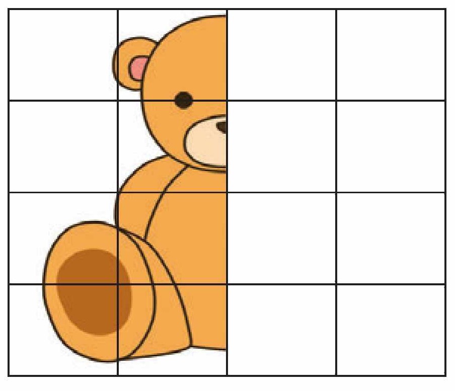 下图中的小熊缺了一半?画一画,把它补充完整。