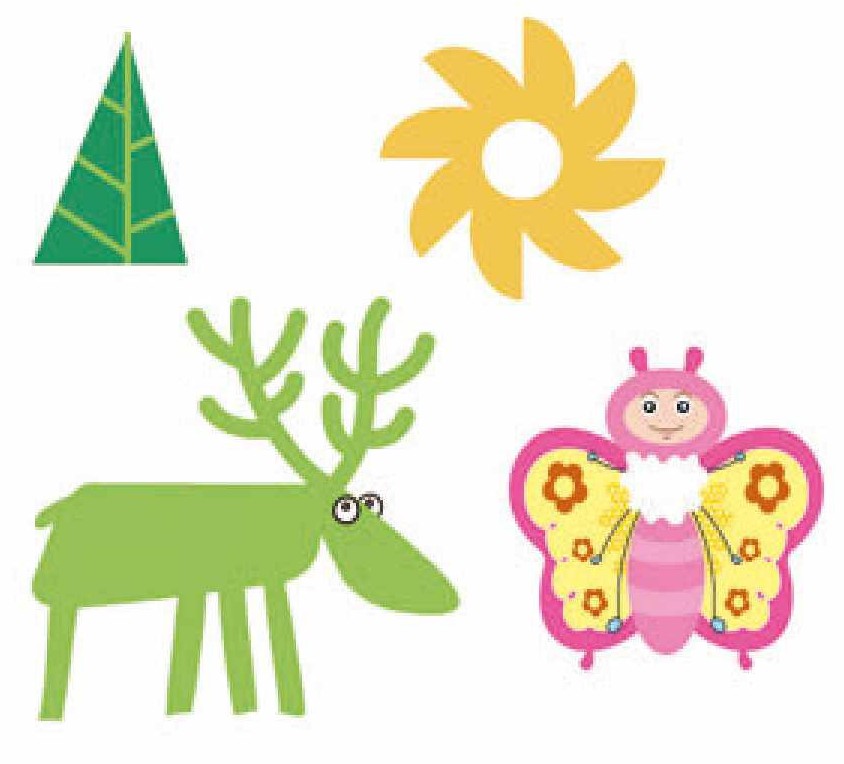 请你仔细观察画面,说一说,左上角的轮廓图是由哪些物品的轮廓组合而成的呢?并用笔圈一圈。