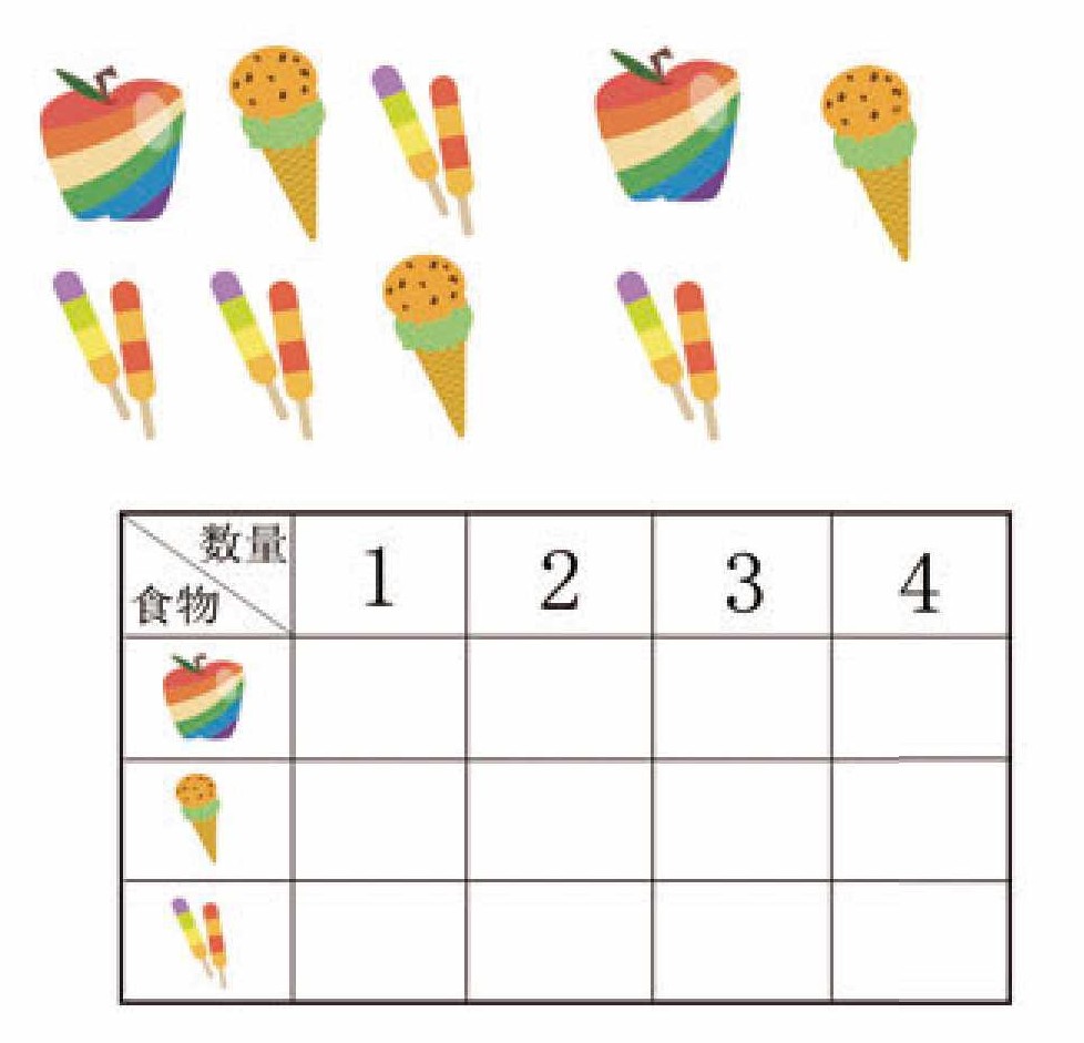 认识统计表,学涂小方格,每种食物有多少个就涂对应数字的小方格。
