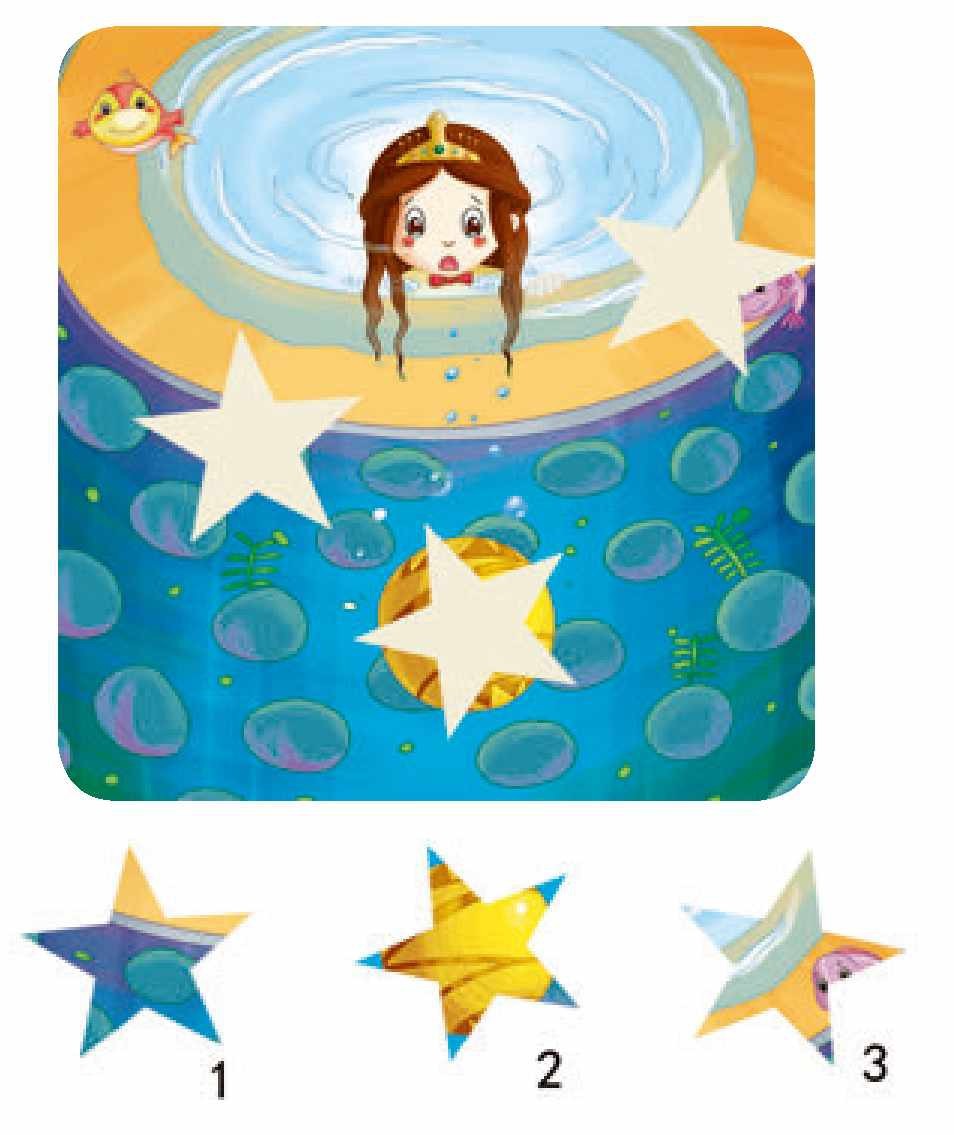 请找出下图中空缺部分的拼图,并把相应的数字写在空白的星星里。