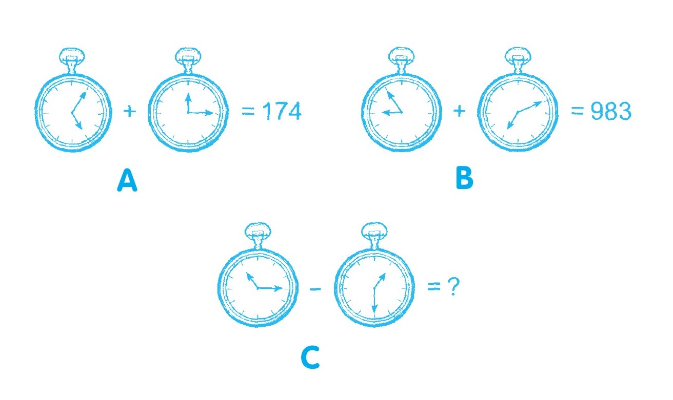 你想知道如何破译密码吗?来做一道题,测一测你的破译能力。先看一看A和B两个时钟所组成的算式,然后破译出C算式的结果是多少。考验你的时候到了! XR7kIKsJBuVkwnNIENmwuCZ8u6u5t52c5Vb4H+e/eIo2RKo5bXlO79p+GIonZhpz