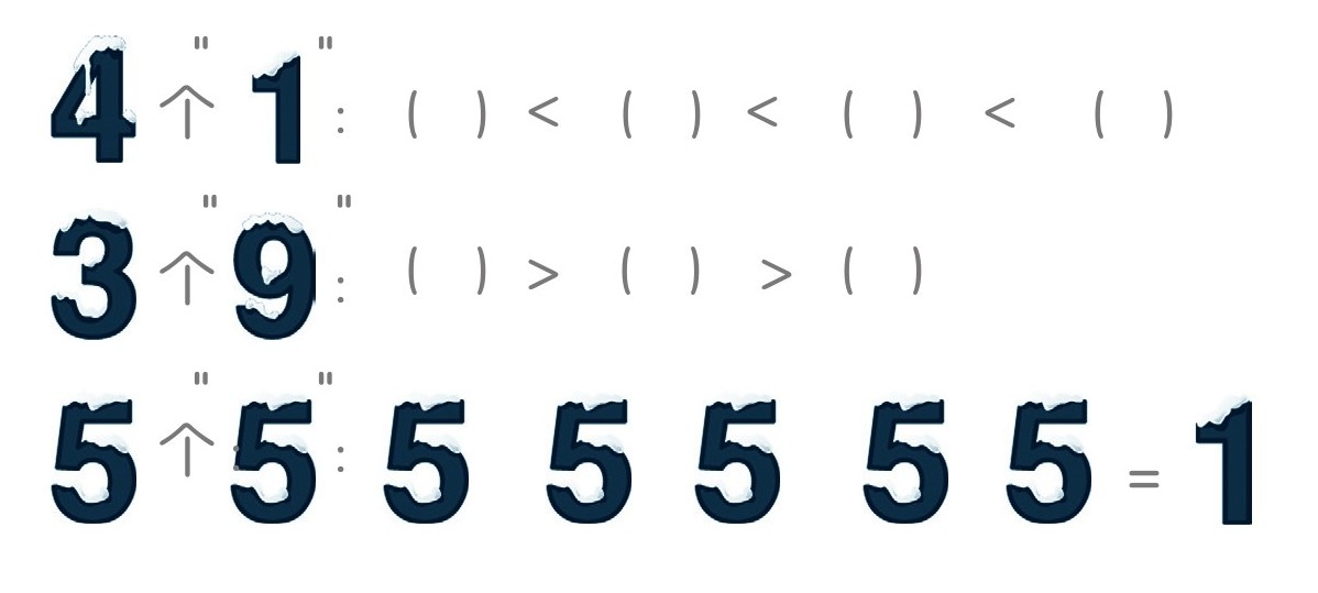 用4个“1”组成4个不同的数,使它们一个比一个大;用3个“9”组成3个不同的数,使它们一个比一个小;用5个“5”再加上一些普通的数学符号,组成一个等于1的算式。 aDRpbJ4gTszUC/c2mTggxebXBRtUF+An1S4CZwKzQIZpezO+YVdw94cpbC23p57o