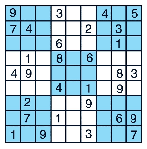 这是一个比一般数字游戏难一点儿的数字游戏。要求不仅每一行、每一列和每一个九宫格里必须包含1~9这9个数字,而且还要求在两条主对角线上也必须包含1~9。 aDRpbJ4gTszUC/c2mTggxebXBRtUF+An1S4CZwKzQIZpezO+YVdw94cpbC23p57o