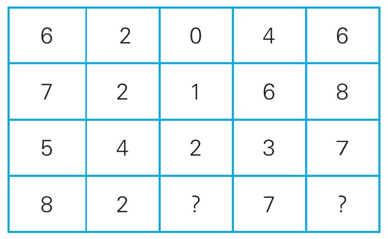 下面表格中的数字摆放有一定的规律,请你找出规律,并填上问号处的数。