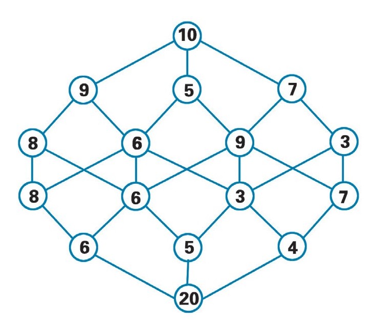请从下面图形顶端的数字10开始,往下寻找两条路线,直到最下面一个数字20为止。①要求该路线所经过的数字之和为49;②要求该路线所经过的数字之和为54。 aDRpbJ4gTszUC/c2mTggxebXBRtUF+An1S4CZwKzQIZpezO+YVdw94cpbC23p57o