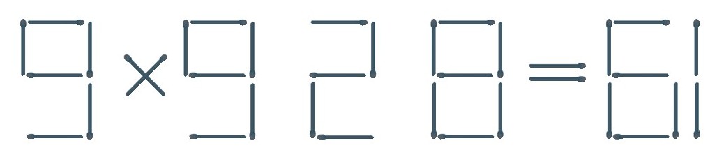 下面是淘气鬼扔下的烂摊子。请你移动其中的一根火柴使等式成立。