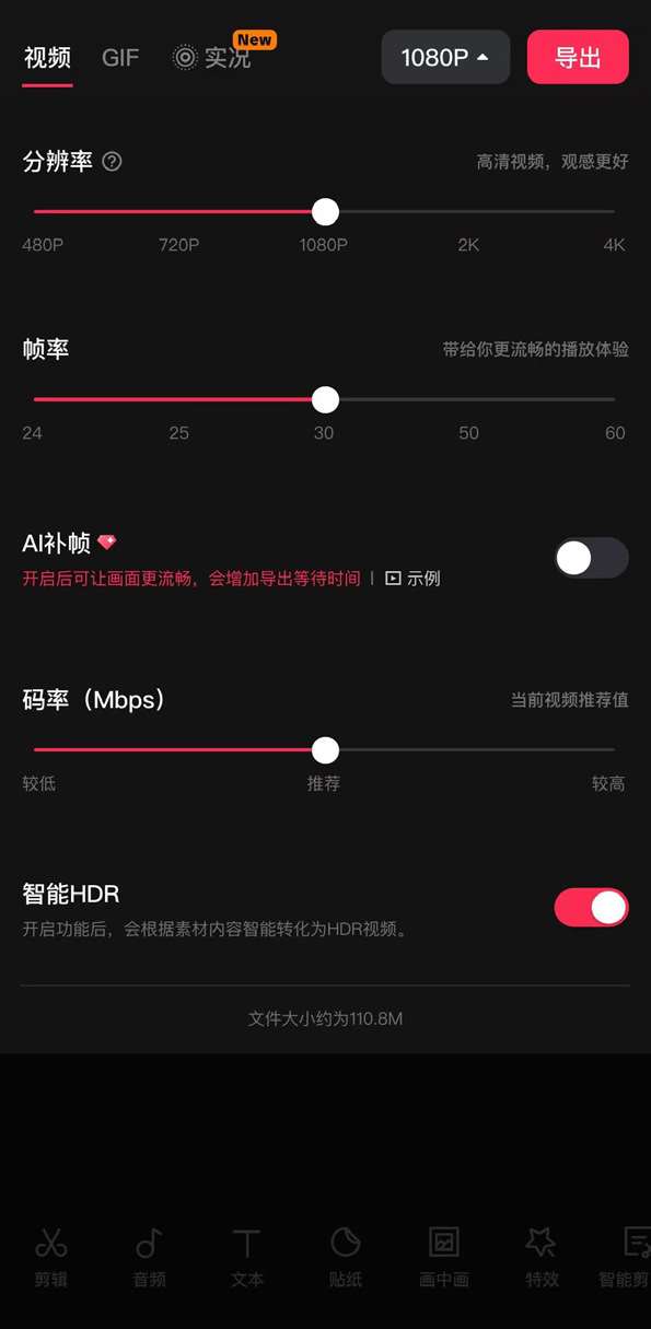 在使用剪映移动版对视频素材进行剪辑处理后,我们往往需要点击轨道上方的三角形播放按钮预览视频整体效果,确认满意后,便可点击右上角的“导出”选项,在导出界面中选择合适的分辨率、帧率等参数,如图2-22所示。一般选择分辨率为“1080P”,帧率为“60”,以保证视频质量。