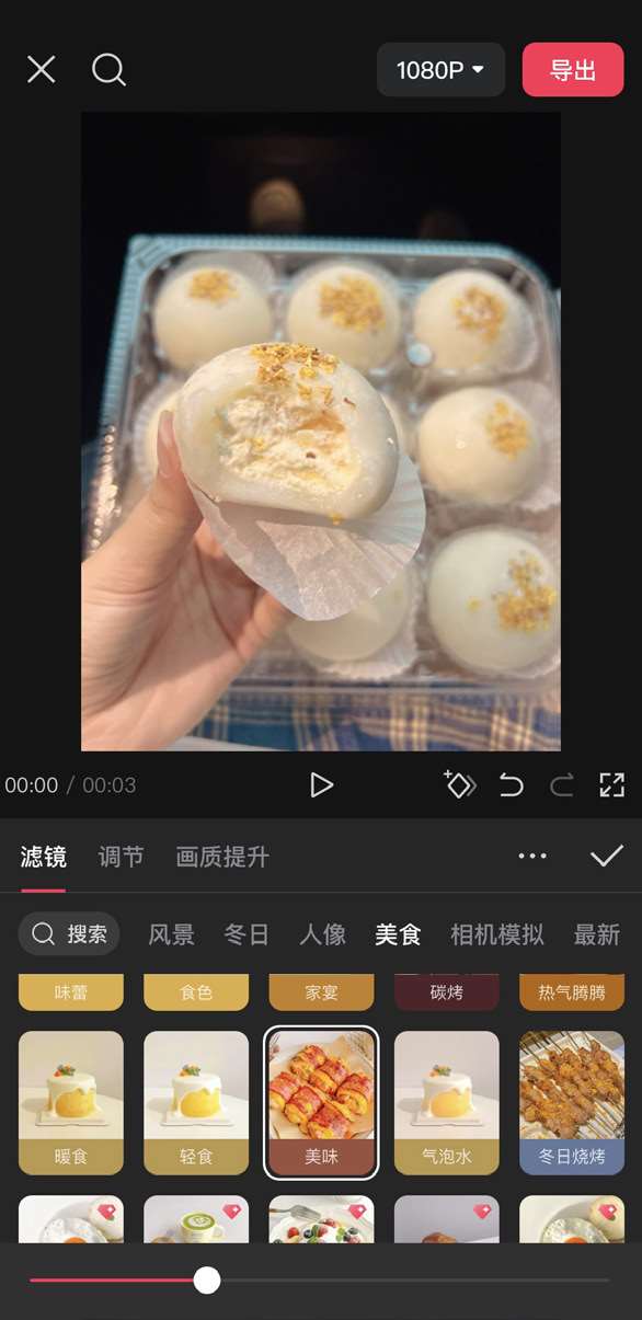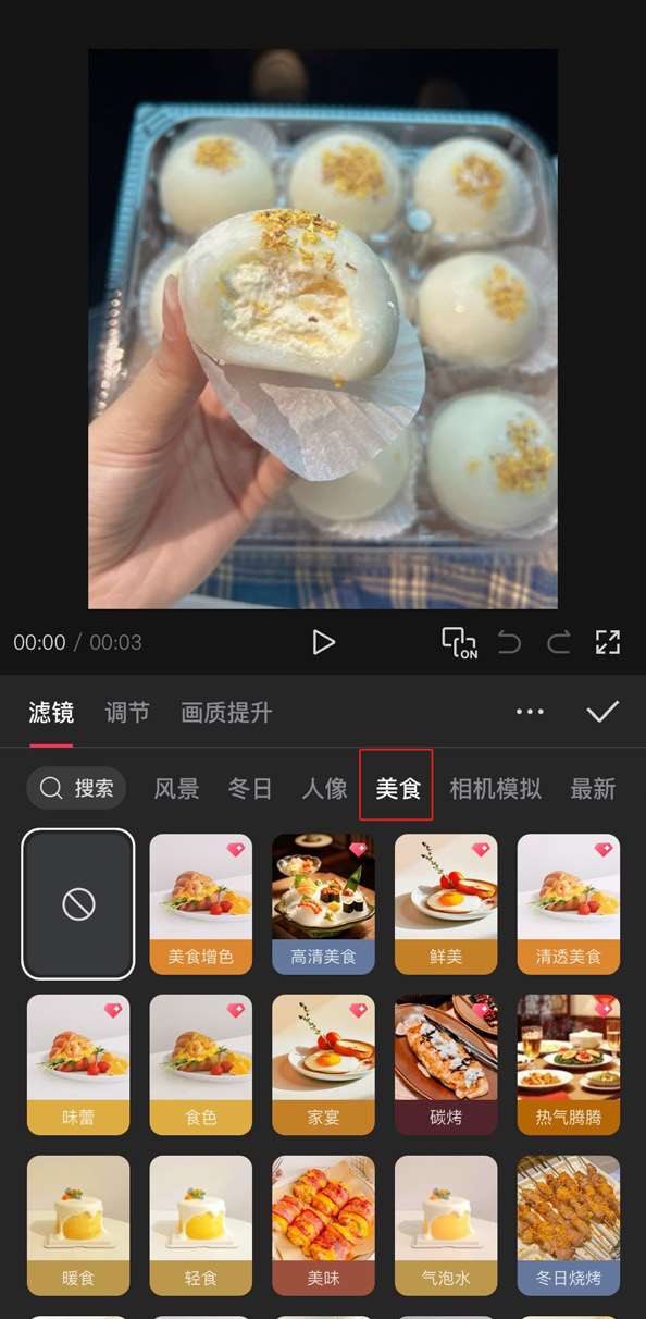 以下是使用剪映移动版给视频添加美食滤镜的步骤。