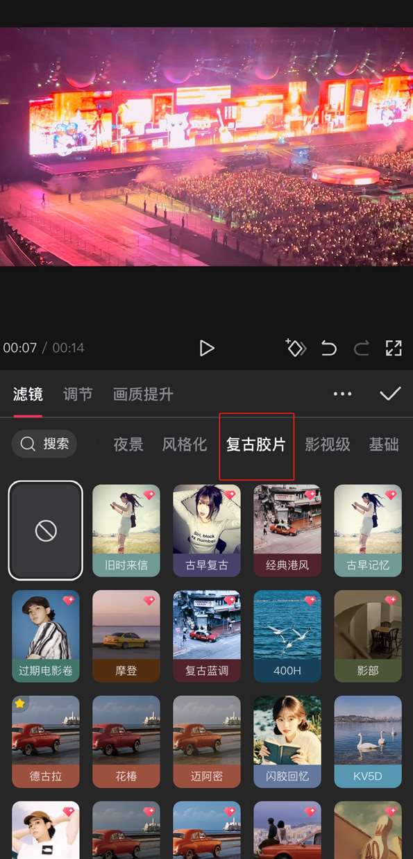 以下是使用剪映移动版给视频添加复古胶片滤镜的步骤。
