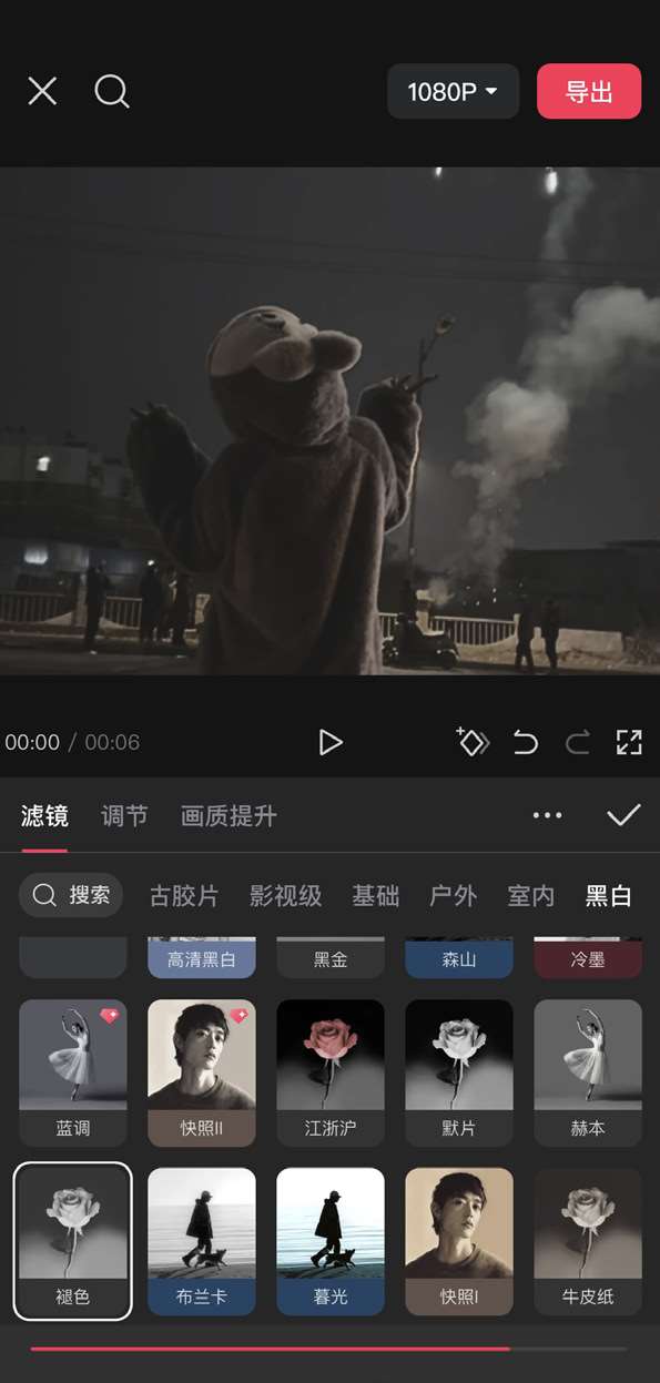 以下是使用剪映移动版给视频添加黑白滤镜的步骤。