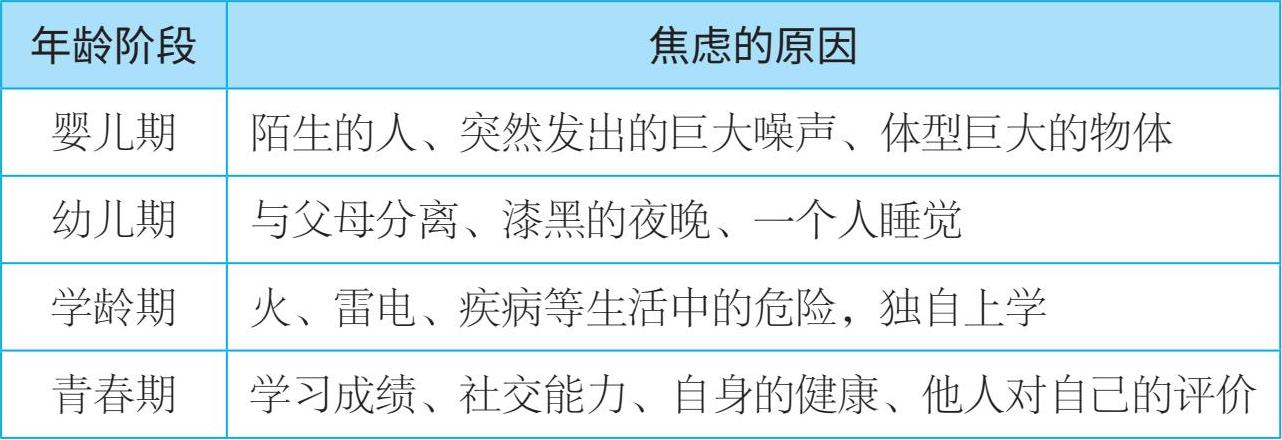表1-1 不同年龄段孩子产生焦虑情绪的代表性原因