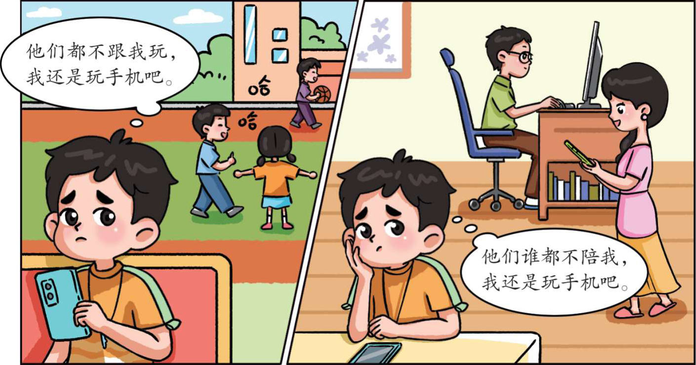 孩子在面对学业压力和人际关系问题时,感到无人可倾诉或无人理解,就会转向手机寻求安慰,逃避现实,而不是向父母或老师寻求帮助。