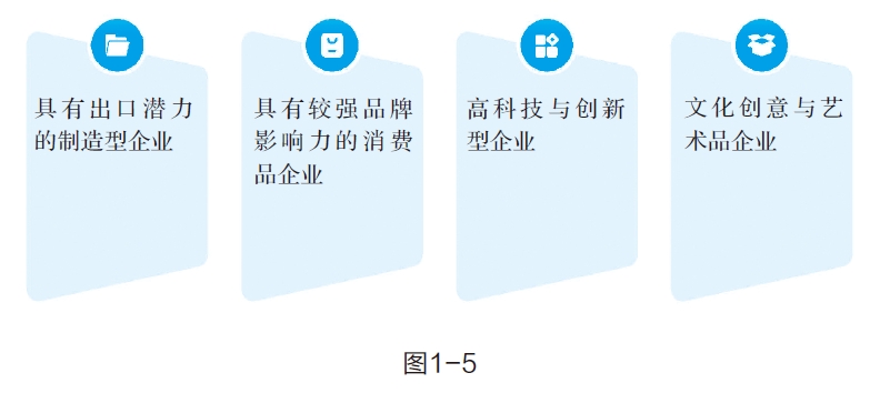 跨境电商并非所有企业都能轻松适应,它更适合具有一定规模、技术实力以及产品优势的企业,如图1-5所示。