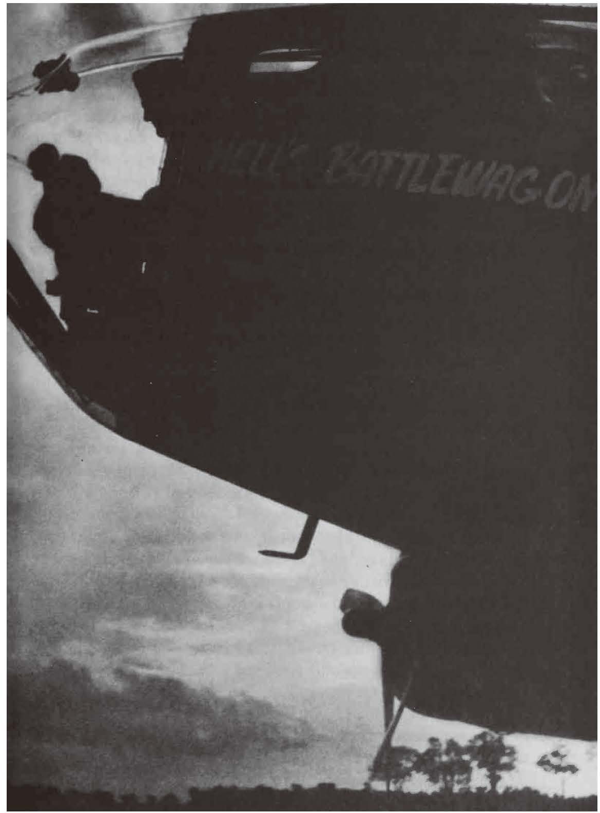 相同的流程持续了四天。我拍了大量的照片。我练习玩“高低”游戏,还学会了其他有趣的新扑克游戏,叫作“在海里吐口水”“棒球”和“红狗”。到了第五个早晨,我的英镑全都花完了,但这次任务并没有被取消。我陪我的扑克朋友们到他们的飞机上去,从各个角度给他们拍了照片。一个叫作毕肖普的年轻中尉是最后一个出发的,在爬上控制室之前,他摆了个姿势拍肖像照。他只是一个小个子,但他的鼻子和他的战机的鼻子惊人的相似,所以我把它们放在了一起。我对这个组合非常满意。