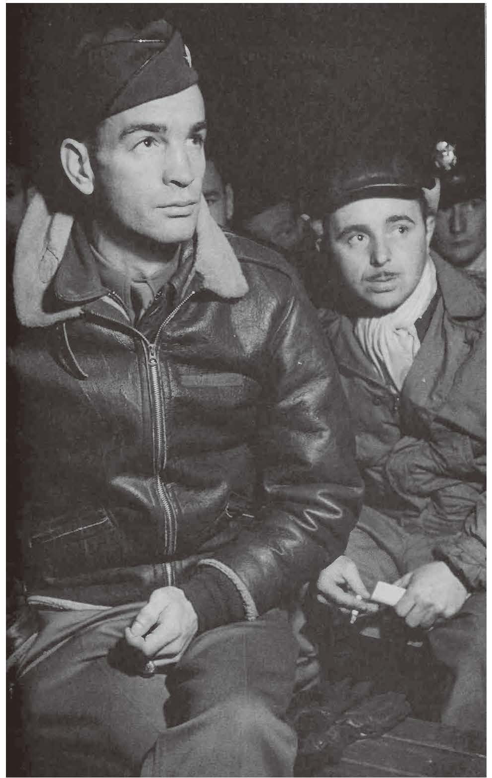 ↑英国切尔维斯顿,1942年11月。一位美国第三零一轰炸大队的小队长和他的成员在认真听取简报,他们将在白天轰炸圣纳泽尔,从那里派出的潜艇威胁了前往北非的美国船只。
