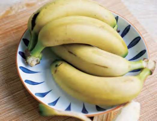 · 香蕉粥 新鲜香蕉3根(约250克),去皮,切成丁。粳米100克,洗净后用清水泡2小时,捞出沥干。煮沸半锅水,加入粳米,大火再煮沸后加入香蕉丁及100克冰糖,改小火煮成粥状。