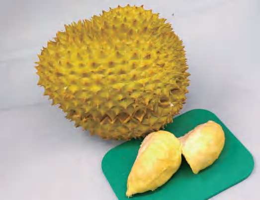 【功 能】 补肾壮阳,滋脾补气,活血散寒。榴莲香气浓郁,可产生令人愉悦的感觉,还可增进食欲,因此有“百果之王”的美誉。榴莲富含多种维生素、氨基酸及微量元素,所含的膳食纤维还能促进肠蠕动,是体质虚弱者及产后妇女的滋补佳品,在抗衰老、调节免疫力、预防癌症等方面也具有养生功效。
