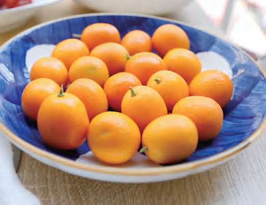 果实矩圆形或卵形,长2.5~3.5厘米,11—12月果熟时金黄色,果皮肉质厚而平滑、有许多腺点、有香味。