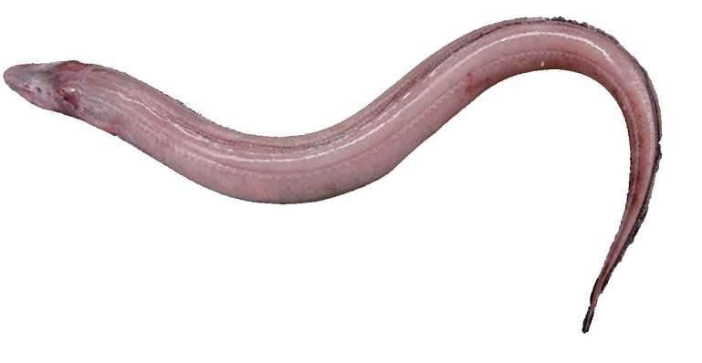 形态特征│ 体无鳞,全身光滑。侧线孔明显。身体无任何斑纹。齿小,颗粒状,排列不整齐,呈带状。胸鳍发育完整;背鳍起点在胸鳍中央部位上方。背鳍、臀鳍均止于尾端的稍前方,不相连续;背鳍、臀鳍鳍条在近尾端处较高。纵带鳍具有黑色边缘。脊椎骨数153~162。